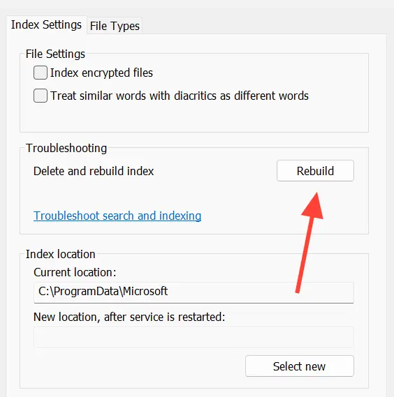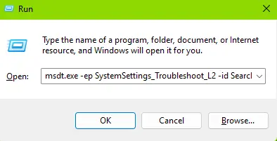 – Run: msdt.exe -ep SystemSettings_Troubleshoot_L2 -id SearchDiagnostic