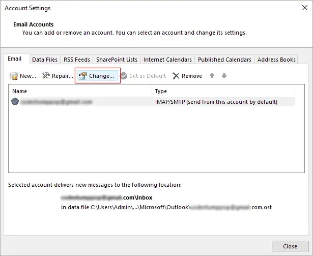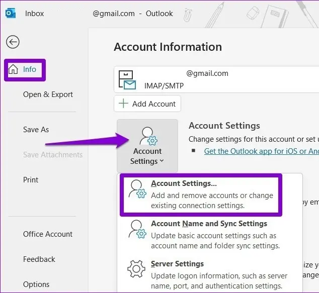 – Go to File > Account Settings > Account Settings.