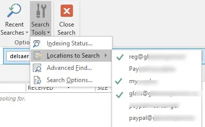 – In Outlook, open Search Tools > Search Locations.
