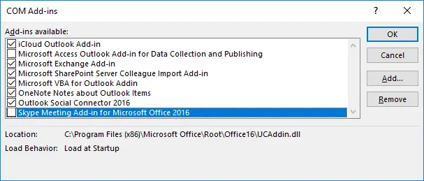 | Outlook 2016-64 Bit Windows (Click to Run) | C:Program Files (x86)Microsoft OfficerootOffice16 |