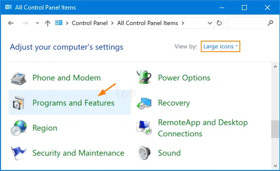 – In Control Panel open Programs and Features.
