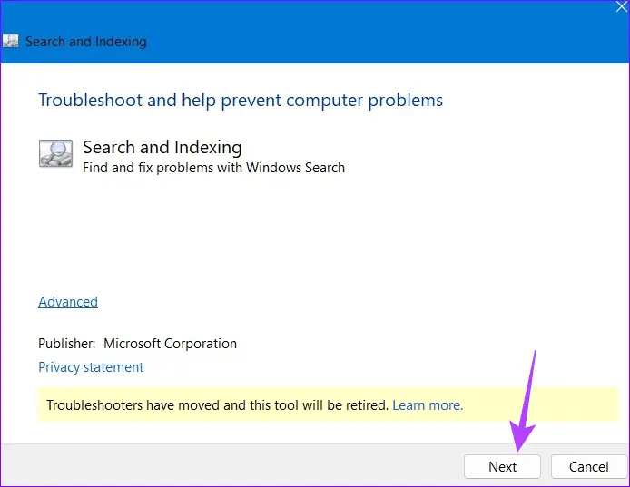 Use the Search and Indexing troubleshooter in Windows: