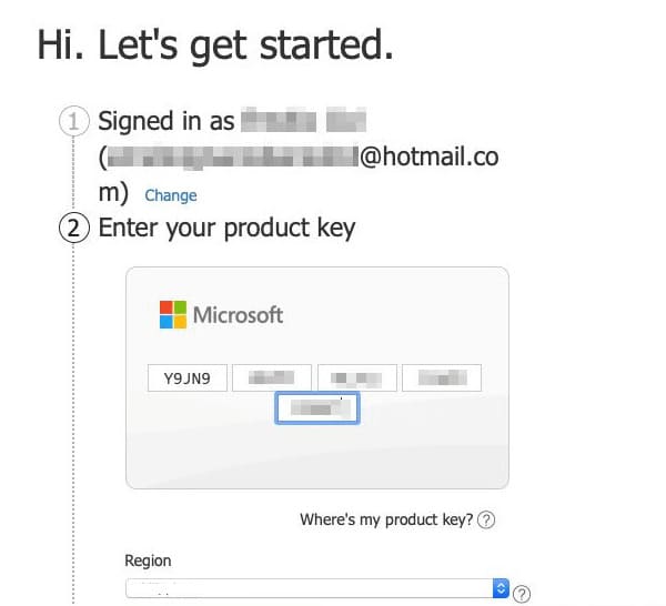 6) After opening the “Account” menu, and in this window click “Change Product Key”.