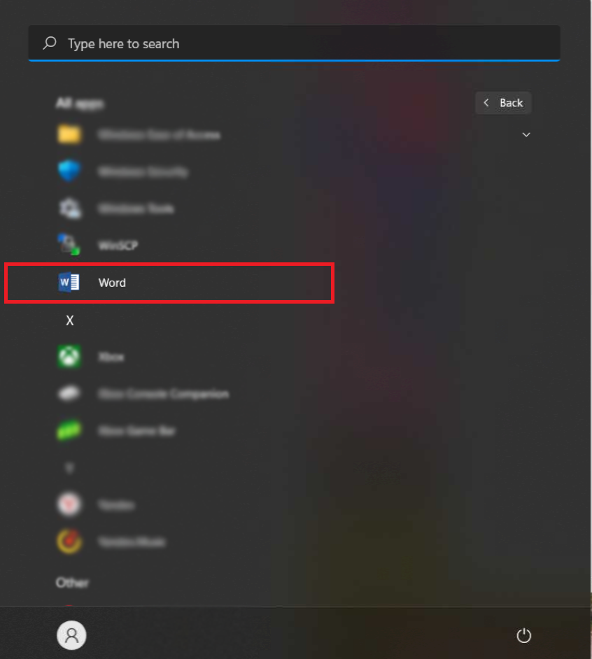 4) Then, after the installation is complete, open the Start menu and find any Office application there, for example, “Word”.