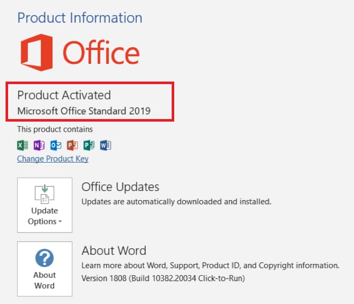 7) After successful activation, your Microsoft Office 2019 will be ready to work! You can check the activation from the “Account” menu.
