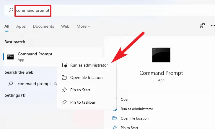 1. Open Command Prompt with administrator privileges.