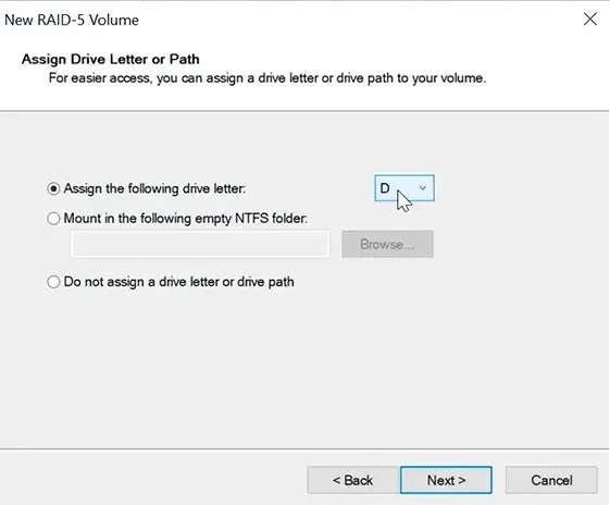 4. Assign a drive letter and file system (NTFS).
