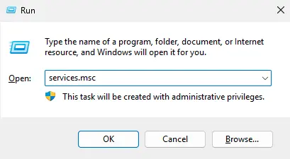 1. Open the Services window by pressing Win + R, typing services.msc, and pressing Enter.