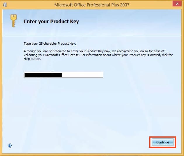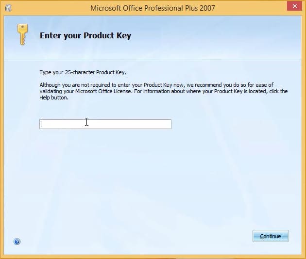 3) The first installation window will ask you to enter the product key. You can purchase a product key for Microsoft Office 2007 Pro Plus in our catalog on the next page for only 9.20 €. Instant delivery to your email automatically right after payment. Orders are processed 24/7.