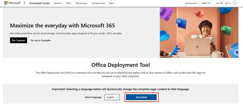 – The first thing do you need is to download the Office Deployment Tool (ODT) from the official Microsoft website. Click “Download” and save it in a separate folder.