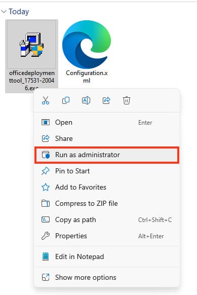 9) Right-click and run as administrator the officedeploymenttool_17531-20046.exe file.