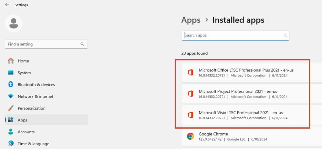 Upon completion, you will be able to close the installation window and verify in the “Applications” section that all the needed Office LTSC versions have been successfully installed.