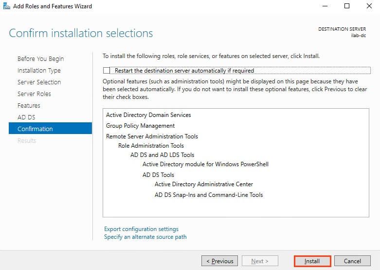 10. In the Confirmation section, confirm the installation and click Install.