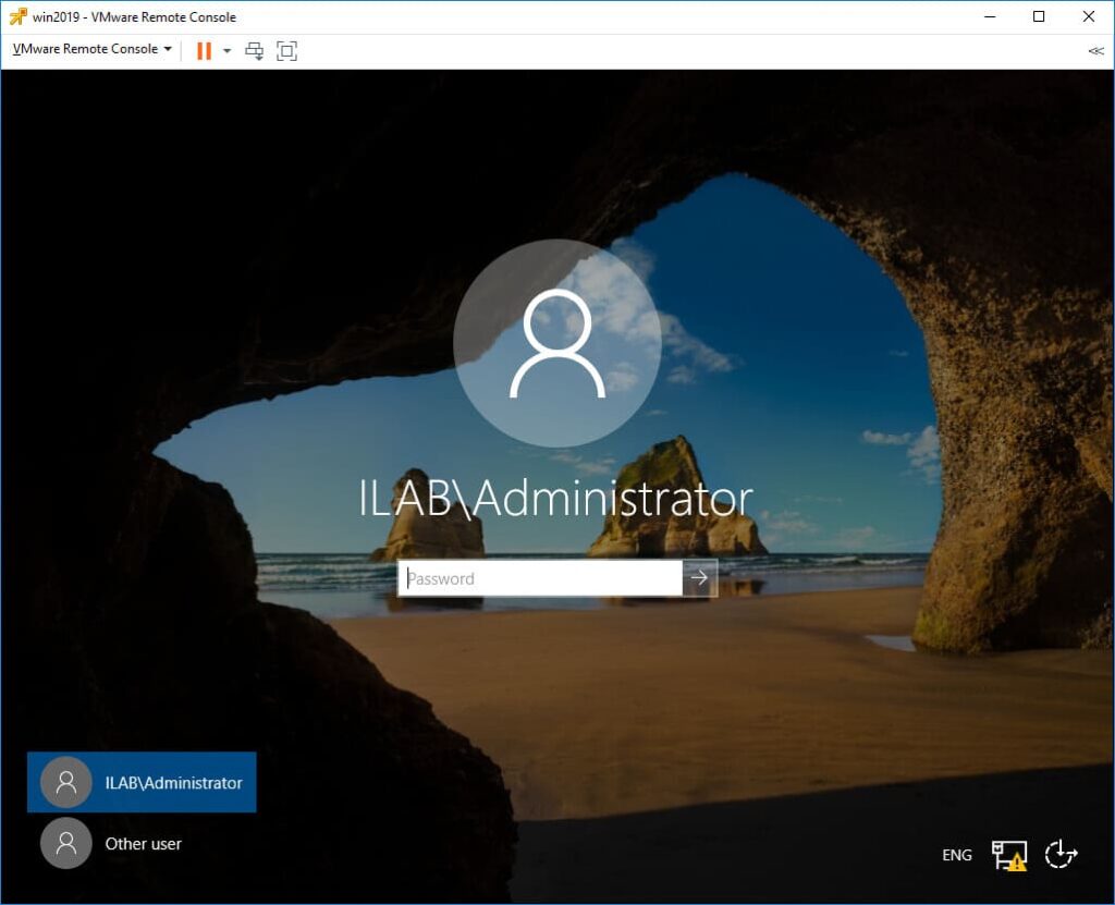 1. Log in using the domain administrator account (e.g., “ILAB\Administrator”).