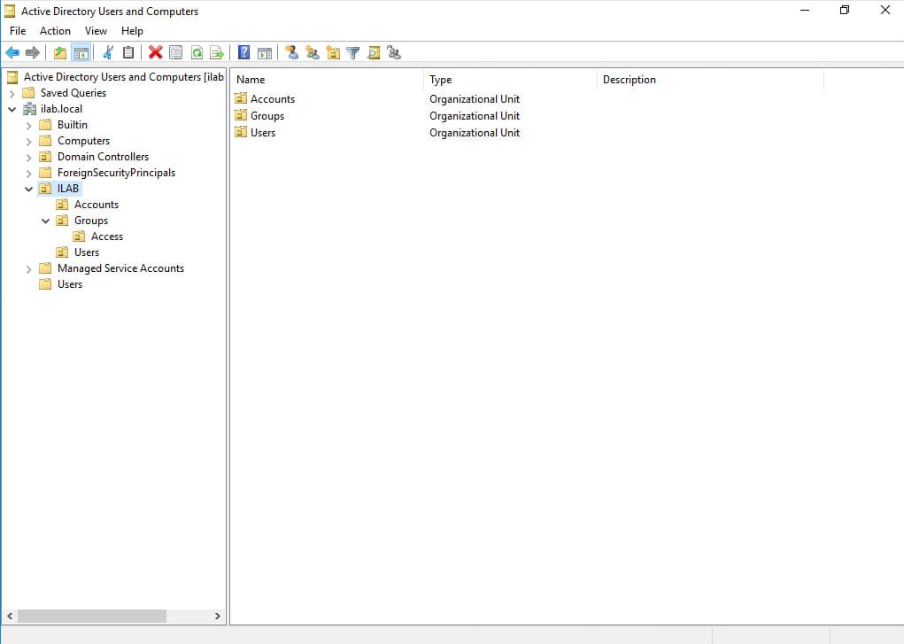 4. Build your company’s structure within the OU. You can create user accounts and access groups. Create an account for yourself and add it to the Domain Admins group.