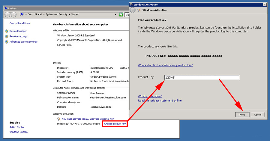 That’s it! After installation, you can start using your system. The trial period without activating the system is 3 days. To activate the system, go to the “System Properties” menu and enter the product key for your version of the system. You can purchase product keys for Windows Server 2008 R2 Standard and Windows Server 2008 R2 Enterprise from our catalog. The product key will be delivered to your email within a few hours.