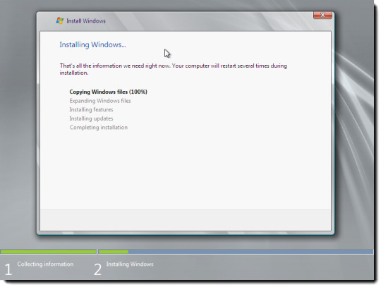 The installation process will now begin. Wait for the installation to complete; your computer may reboot several times.