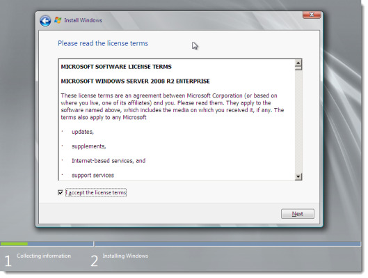 Accept the license agreement.