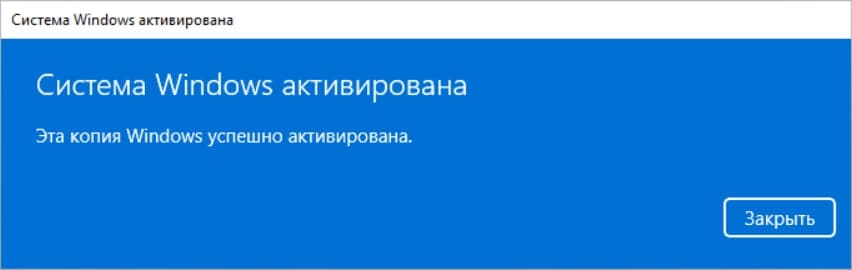 5. После чего, если все успешно система оповестит вас о том, что ваша копия Windows успешно активирована. Теперь можете нажать “Закрыть” и приступать к использованию вашего активированного Windows Server 2025.
