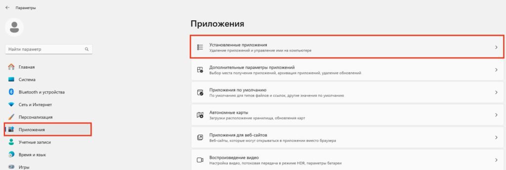 2) Перейдите в “Приложения” => “Установленные приложения”