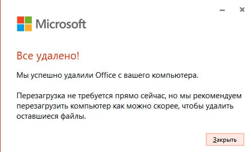 Далее останется только перезагрузить ПК, для того что бы окончательно удалились все оставшиеся файлы Microsoft 365.