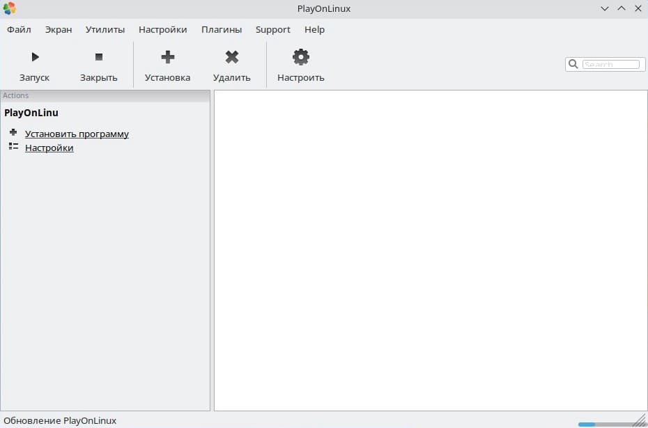 3. После завершения установки откройте PlayOnLinux из меню приложений. Нажмите кнопку «Установить программу».