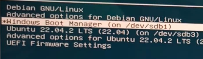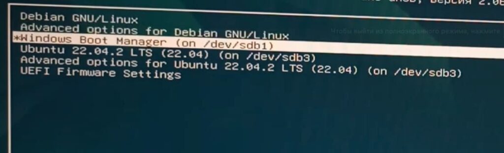 3. Сохраните настройки и выйдите из BIOS/UEFI — должно загрузиться меню GRUB, однако Windows может быть не видно в списке.