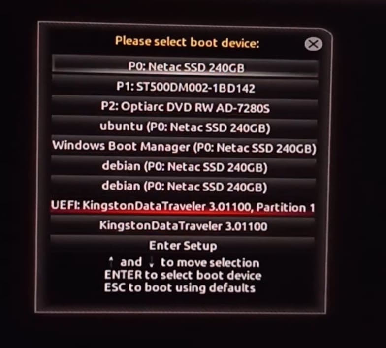 1. При появлении меню загрузки выберите загрузку с флешки (учтите режим — UEFI или Legacy).