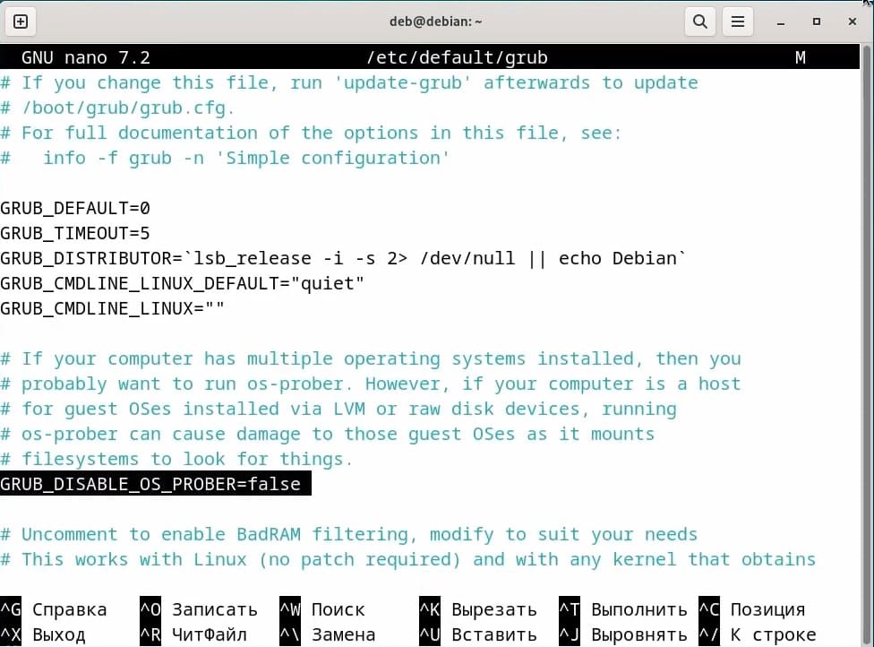 2. Откройте (с правами суперпользователя) файл настроек GRUB. Обычно он расположен по пути: