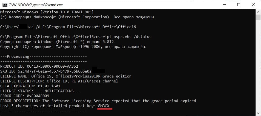 Итак, если у Вас установлен MS Office 2016 или 2019 – Вы можете посмотреть последние 5 символов ключа через командную строку и сравнить его с Вашим купленным ключом на коробке / диске / в письме на Вашей электронной почте, в зависимости куда и каким образом Ваш продавец выслал Вам лицензию на Offcie.