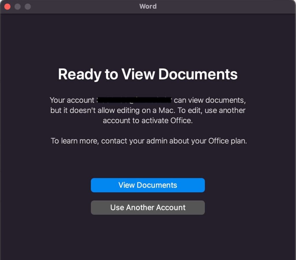 Microsoft 365 account in excel on macOS