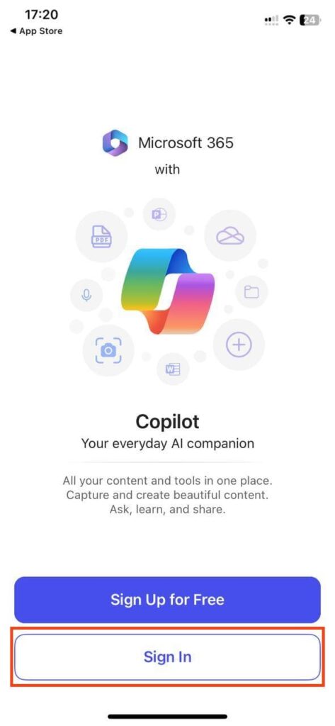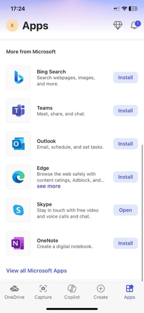 You can also see that other Microsoft apps for iOS, like Outlook and Teams, are available to you in the Apps menu.
