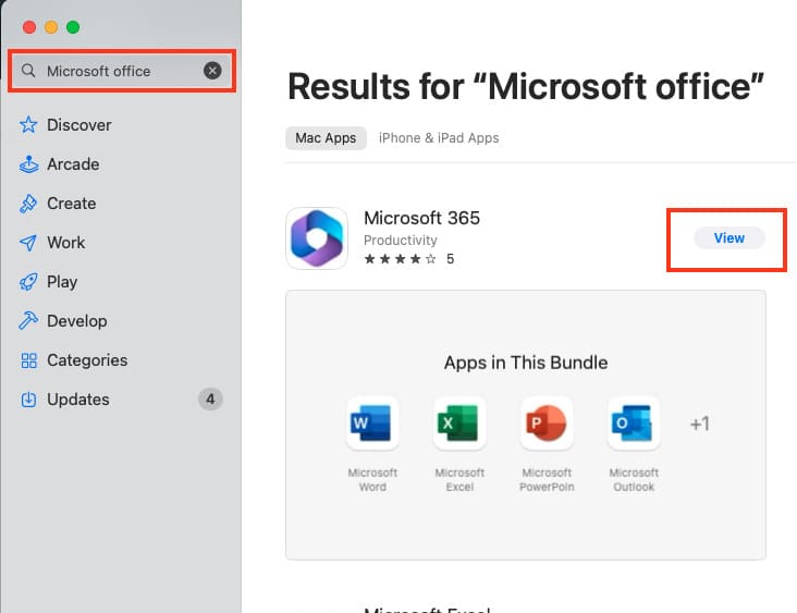 In the App Store, search for “Microsoft Office,” and you’ll find Microsoft 365. Click “Get.”