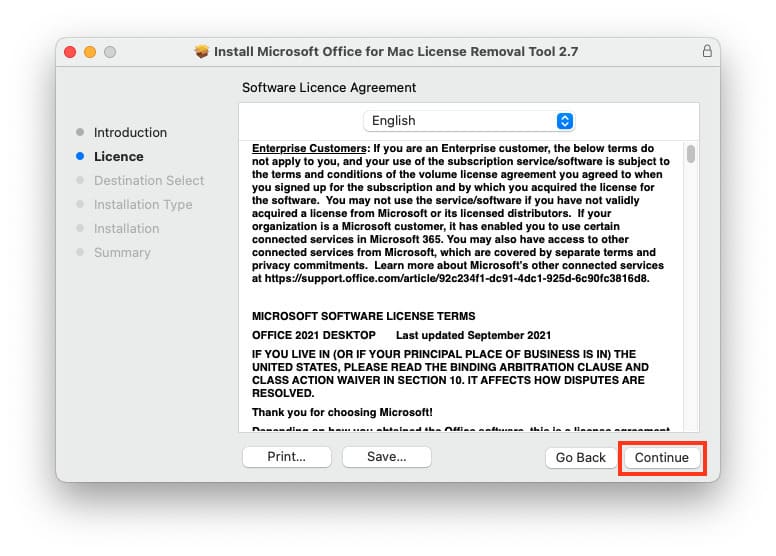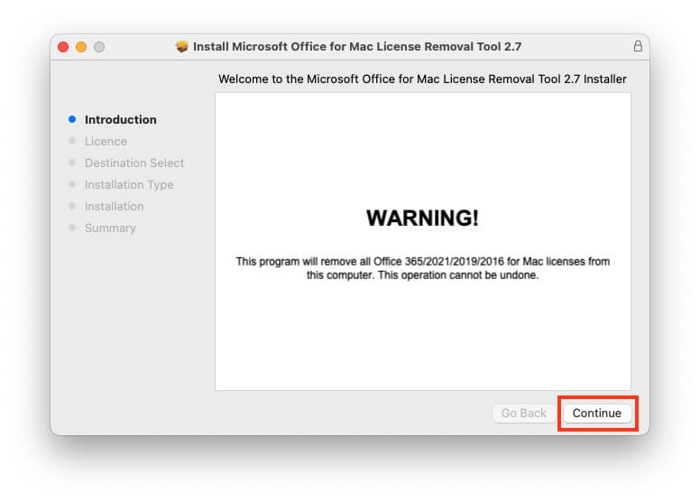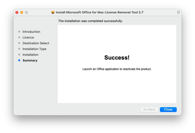 The utility will find old, non-working Office licenses on your Mac, remove them, and then you can reapply the correct Microsoft Office license.