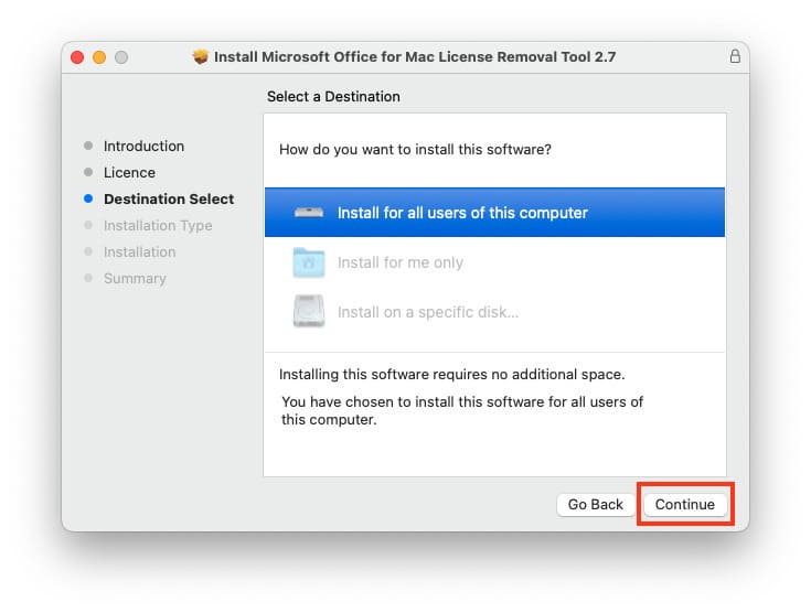 4. Install for all users. Click “Continue.”