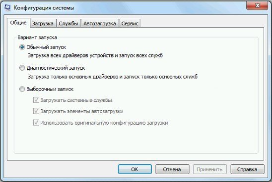 Интерфейс msconfig состоит из пяти вкладок: Общие, Загрузка, Службы, Автозагрузка, Сервис. Рассмотрим каждую из них подробно.