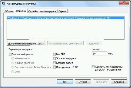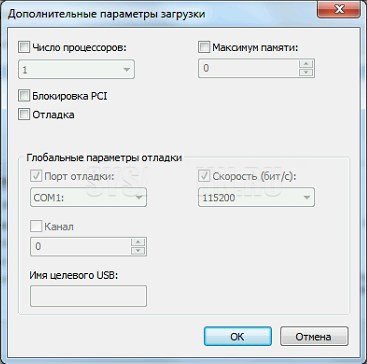 Эта вкладка позволяет управлять параметрами загрузки ОС: выбирать систему по умолчанию, указывать таймаут выбора ОС и использовать дополнительные параметры загрузки (например, ограничить количество ядер процессора или объем памяти).