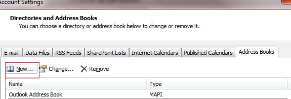2. Перейдите на вкладку Адресные книги (Address Books) и создайте новую адресную книгу, нажав New.