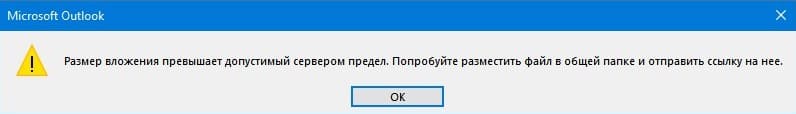 – Размер вложения превышает допустимый сервером предел. Попробуйте разместить файл в общей папке и отправить ссылку на нее.