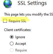 1. Перейдите в секцию SSL Settings на уровне сайта в IIS.