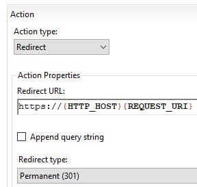 Прежде чем создавать правило перенаправления, убедитесь, что в настройках сайта отключена опция Require SSL.