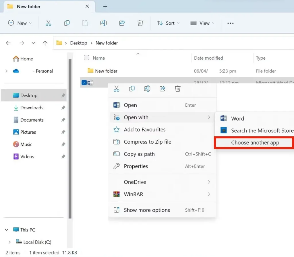 Select the option – Open with.