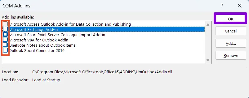 3. If Outlook is stable in Safe Mode, the problem is likely caused by add-ins.
