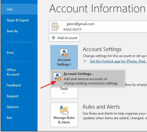 1. In Outlook go to File > Info > Account Settings > Data Files.