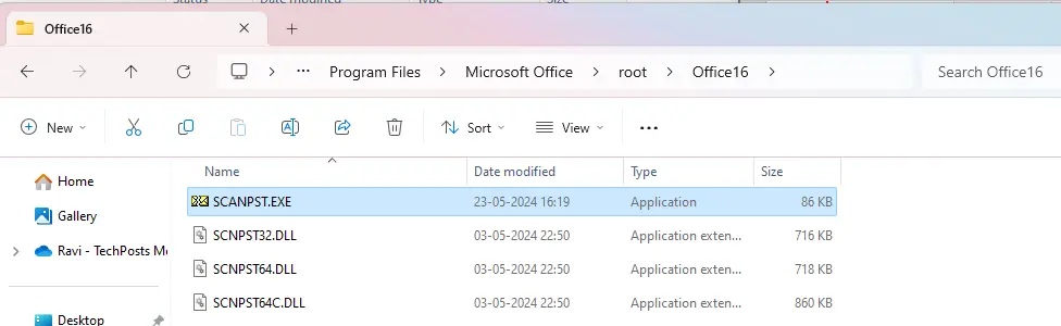 3. Run scanpst.exe and point it to the PST or OST file path.