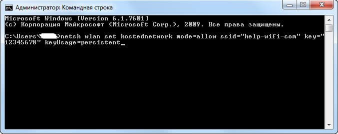 netsh wlan set hostednetwork mode=allow ssid="help-wifi-com" key="12345678" keyUsage=persistent