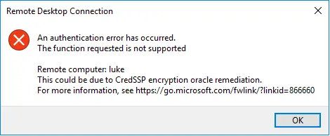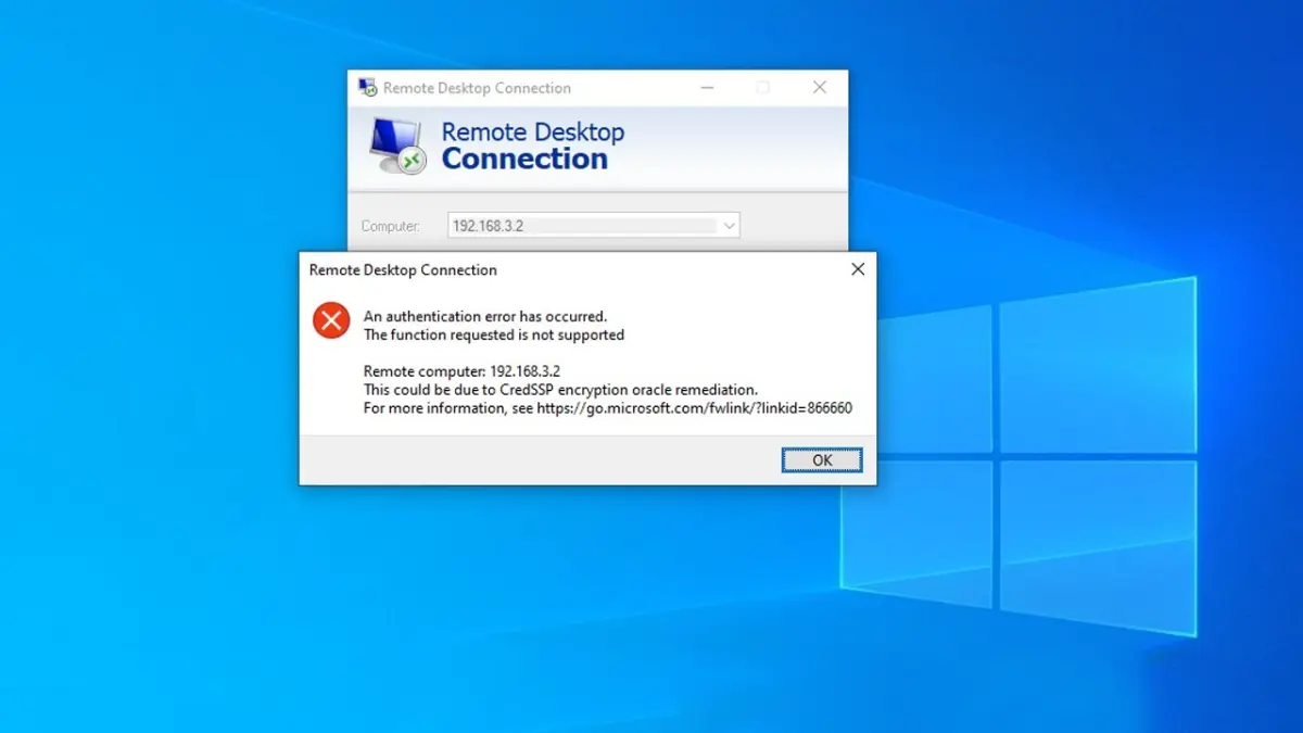 This article explains how to resolve an authentication error when connecting to a Remote Desktop via RDP, which occurs when using a vulnerable version of the CredSSP protocol.