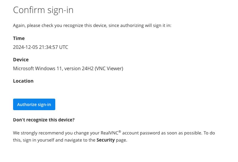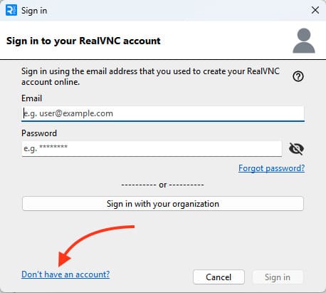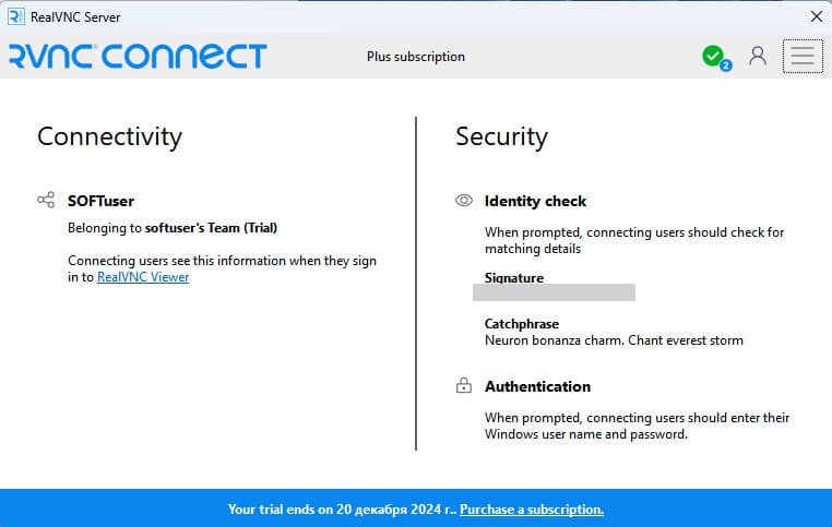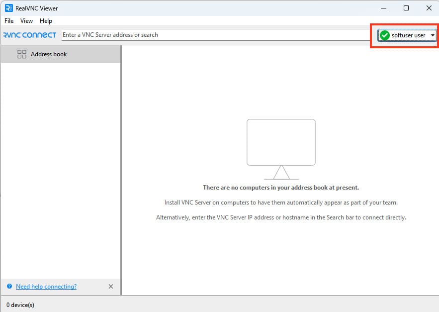1) Войдите в VNC Connect повторно под своим аккаунтом.