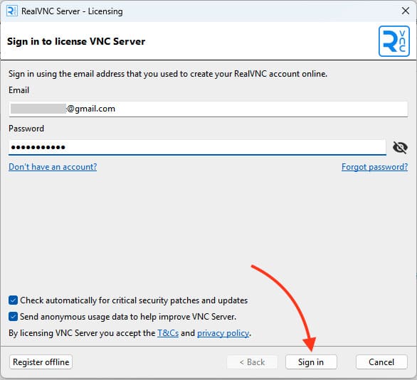 Шаг 2: Регистрация в VNC Viewer