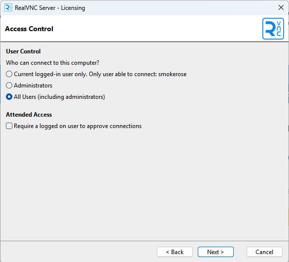 – Укажите, кто может подключаться к компьютеру: все пользователи, только администратор или определённый пользователь.
